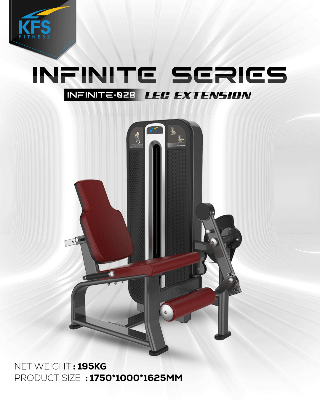 HomeCommercial UseStrength SeriesSelectorizedINFINITE SERIESInfinite Leg Extension Infinite Leg Extension Isolates quadriceps with controlled extension for joint-safe leg training. Category: INFINITE SERIES Product ID: 44515 Description Description Specifications: Target Muscles: Quadriceps Weight Stack: 80–100 kg Adjustable start position Roller pad adjustment Related products Add to WishlistRemove from Wishlist Add to Wishlist Infinite Seated Chest Press Read more Add to WishlistRemove from Wishlist Add to Wishlist Infinite Pull Up Machine Read more Add to WishlistRemove from Wishlist Add to Wishlist Infinite Biceps Curl Read more