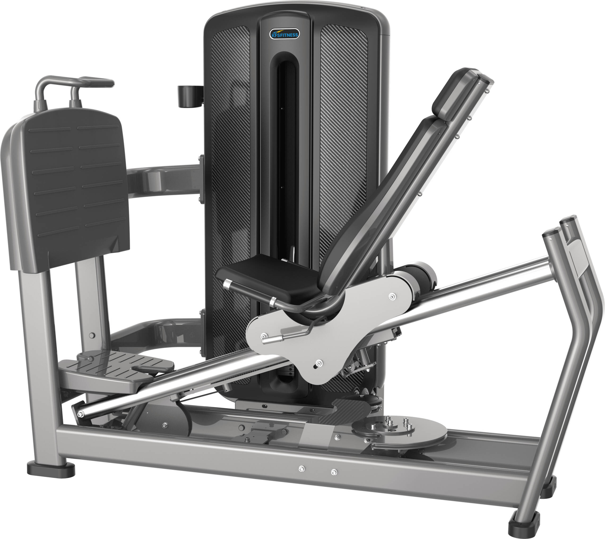 Lower body strength machine focusing on quadriceps, glutes, and hamstrings with guided press motion.